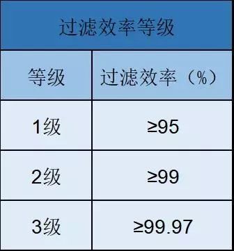 表1:醫(yī)用防護(hù)口罩過濾等級